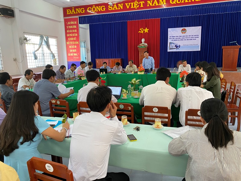 Nhiều hoạt động đột phá trong thực hiện Nghị quyết Hội (26/02/2020 22:04)Nhằm cụ thể hóa chương trình, kế hoạch hành động các cấp Hội trong thực hiện Nghị quyết TW và Tỉnh Hội trong năm. Ban Thường vụ Hội Nông dân tỉnh đã tổ chức buổi làm việc với Hội Nông dân 4 huyện Châu Thành, Chợ Mới, Châu Phú và Phú Tân.