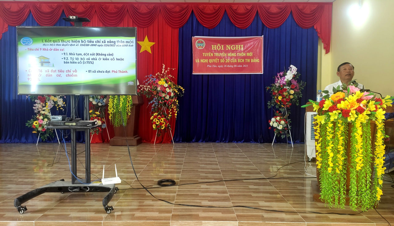 Phú Tân tổ chức tuyên truyền nông thôn mới gắn với Nghị Quyết số 20 của Ban Chấp hành Trung ương Đảng. (26/06/2023 15:55)Ngày 26/06/2023, Phú Tân tổ chức tuyên truyền vận động nông dân tham gia xây dựng nông thôn mới gắn với tuyên truyền Nghị Quyết số 20-NQ/TW ngày 16/06/2022 của Ban Chấp hành Trung ương Đảng khóa XIII về tiếp tục đổi mới, phát triển và nâng cao hiệu quả kinh tế tập thể trong giai đoạn mới.