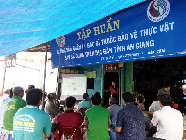 Tuyên truyền hướng dẫn quản lý bao bì thuốc bảo vệ thực vật sau sử dụng (11/07/2018 15:02)Ngày 11-12/ 07, Hội Nông dân tỉnh An Giang và Sở Tài nguyên & Môi trường tỉnh phối hợp với Hội Nông dân xã Vĩnh Chánh-Thoại Sơn tổ chức tập huấn tuyên truyền hướng dẫn quản lý bao bì thuốc bảo vệ thực vật sau sử dụng cho nông dân trên địa bàn xã.